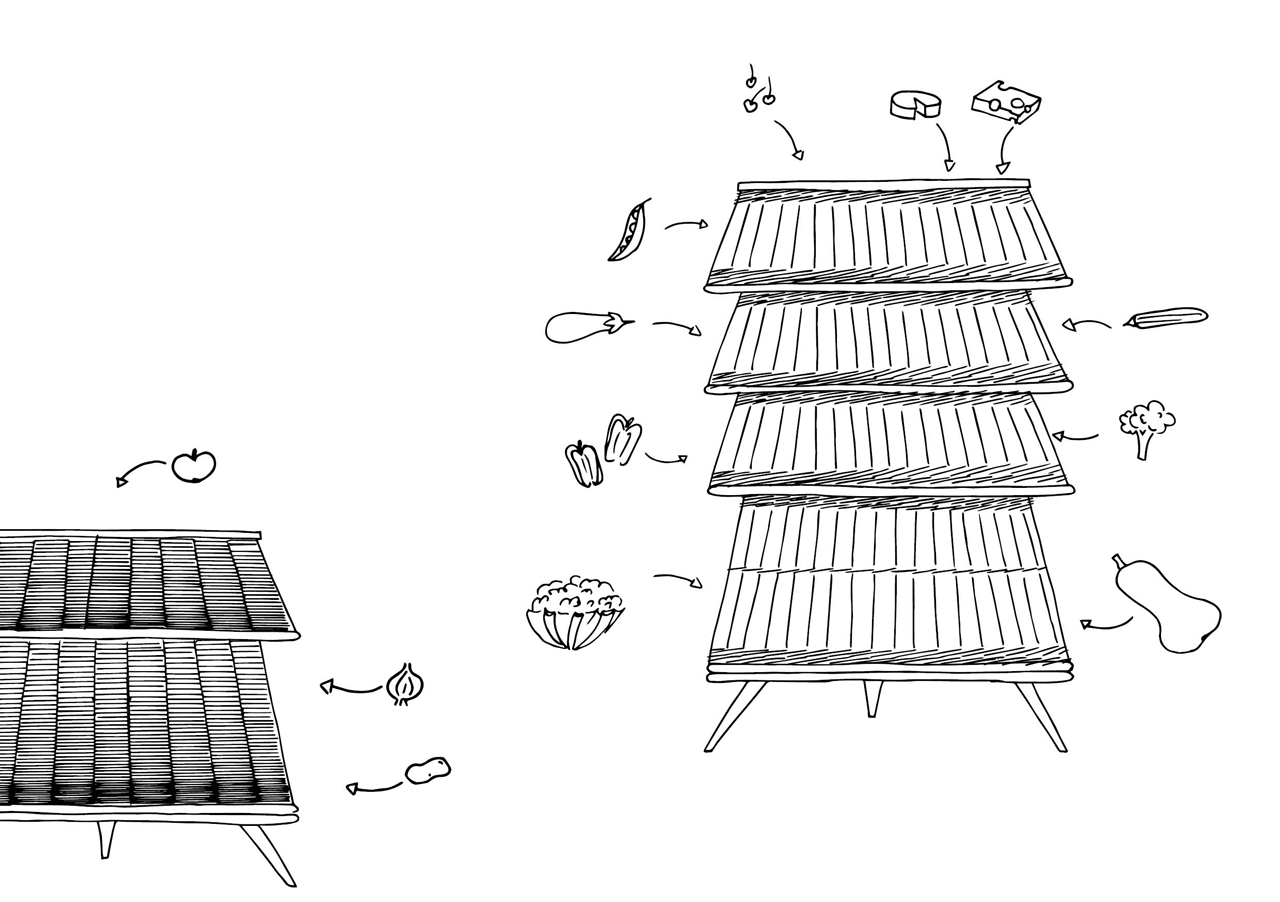 C’est après ses études qu’elle a créé Retour du marché, un meuble de conservation sans énergie, réalisé avec des matières premières locales et bio sourcées : le bois et l’osier. Cette pièce a été exposée pour la première fois à la Milan Design Week.